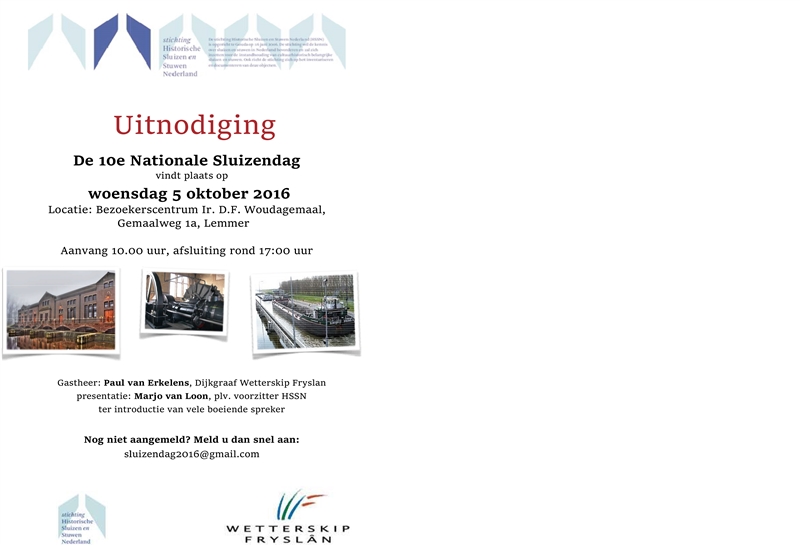 Op woensdag 5 oktober vindt de Nationale Sluizendag weer plaats. Dit keer in het ir. D.F. Woudagemaal te Lemmer, dat tevens UNESCO Werelderfgoed is. Er zijn diverse boeiende sprekers, waaronder onze collega Kees Tak. Hij zal spreken over de integrale voorbereiding van een sluisrestauratie.